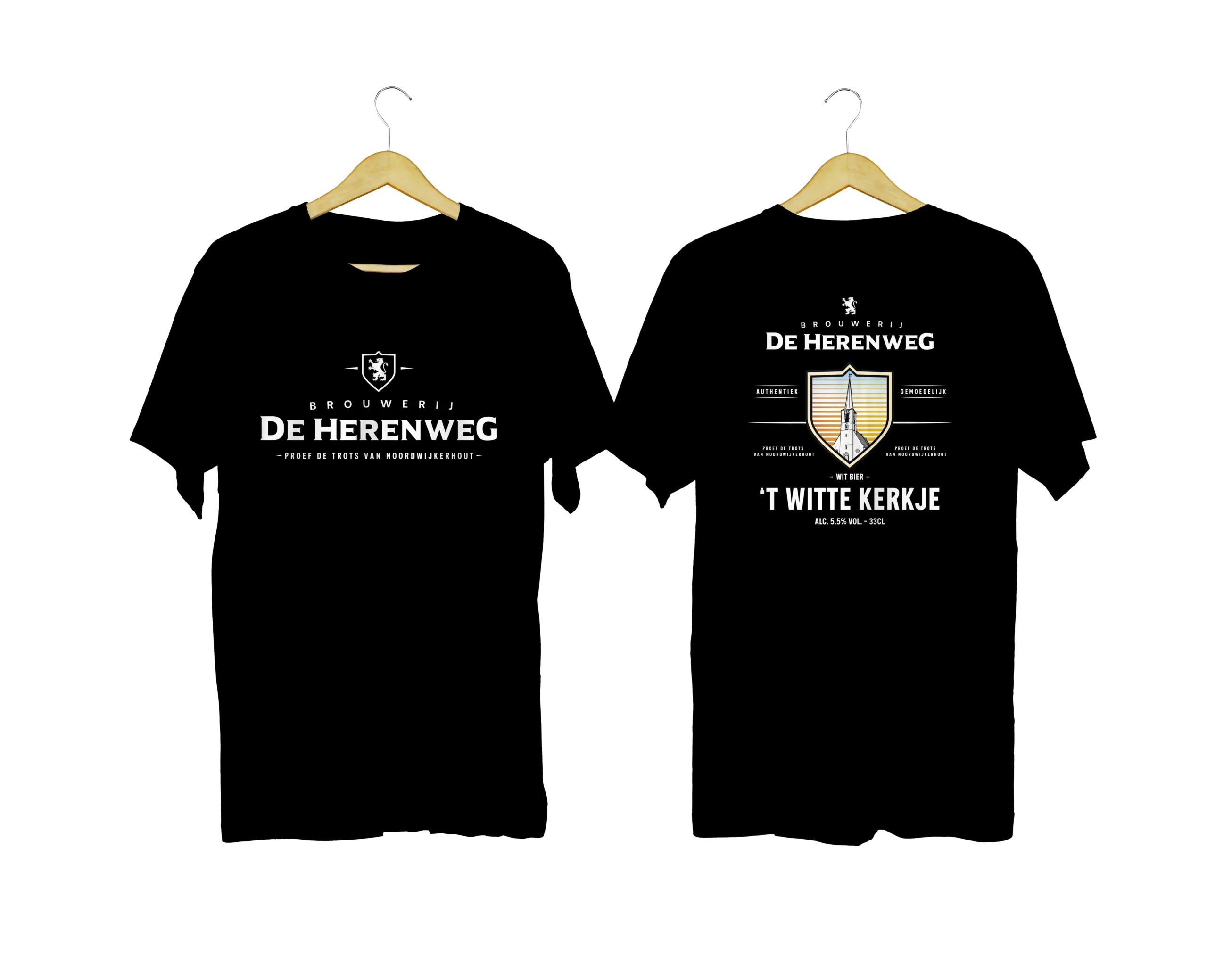 Creme of zwart shirt, helder verhaal. Op de borst De Herenweg, op de rug ’t Witte Kerkje. Authentiek, gemoedelijk en recht voor z’n raap.